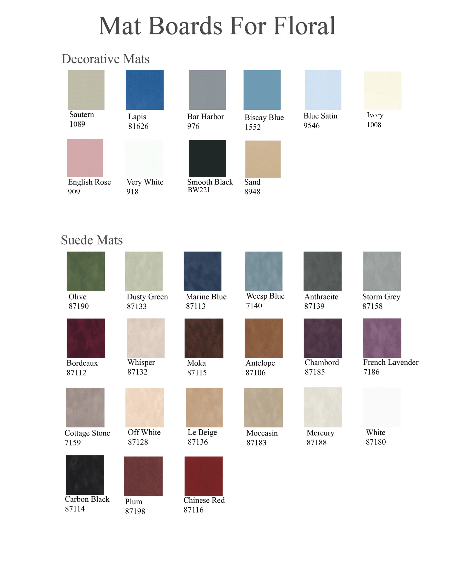 Mat Boards for Floral